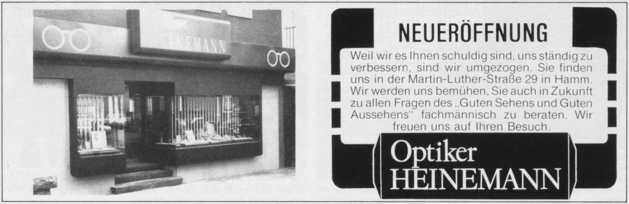| 16:34, 11. Feb. 2024 | Werbeanzeige Optiker Heinemann April 1980.png (Datei) | 1,02 MB | == Beschreibung == {{Bild-Copyright |Motiv=Optiker Heinemann – Werbeanzeige April 1980 |Fotograf= |Aufnahmedatum=1980 |Quelle=Hammagazin 04/1980, S. 20 |Urheber=Optiker Heinemann |Pressegrafik= |Freigabe= }} Kategorie:Historische Anzeigen Kategorie:Anzeigen und Werbeartikel (Fotos) | 1 | |