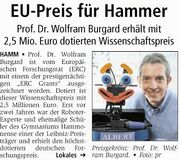 - Der aus Hamm stammende Prof. Dr. Wolframn Burgard erhält einen ERC Grant der EU. Der Preis ist mit 2,5 Mio. Euro dotiert.