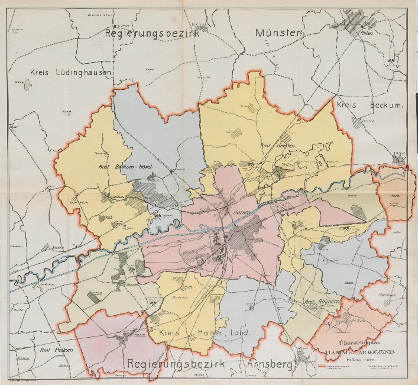 Hamm (Hamm) - Stadtgebiet und Umgebung - Übersicht - (1924) 1925 - 1 : 25 000 - 65 x 70 - farb. Druck - Regierung Arnsberg Nr.17765